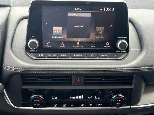 - Radio: AM/FM NissanConnect -inc: 6 speakers plus 2 tweeters, Apple CarPlay, Android Auto, 8" color touch screen display, Bluetooth®, 2 front USB type-C, Wi-Fi hotspot and NissanConnect Services powered by SiriusXM