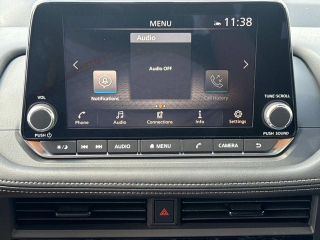 - Radio: AM/FM NissanConnect -inc: 6 speakers plus 2 tweeters, Apple CarPlay, Android Auto, 8" color touch screen display, Bluetooth®, 2 front USB type-C, Wi-Fi hotspot and NissanConnect Services powered by SiriusXM