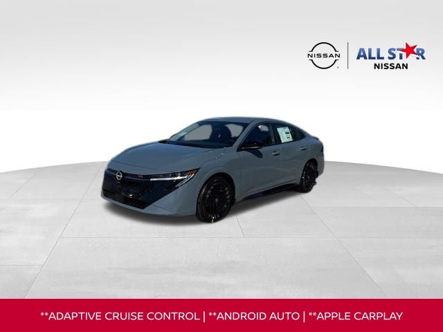 **ADAPTIVE CRUISE CONTROL, **ANDROID AUTO, **APPLE CARPLAY, **CROSS TRAFFIC ALERT, **CRUISE CONTROL, ABS brakes, Active Cruise Control, Alloy wheels, Electronic Stability Control, Heated door mirrors, Illuminated entry, Low tire pressure warning, Remote keyless entry, Traction control, 18 Machined Alloy Wheels, 4-Wheel Disc Brakes, 6 Speakers, Air Conditioning, AM/FM radio: Sirius, Auto High-beam Headlights, Automatic temperature control, Brake assist, Bumpers: body-color, Delay-off headlights, Driver door bin, Driver vanity mirror, Dual front impact airbags, Dual front side impact airbags, Emergency communication system: NissanConnect(R) Services powered by SiriusXM(R), Four wheel independent suspension, Front anti-roll bar, Front Bucket Seats, Front Center Armrest, Front reading lights, Fully automatic headlights, Garage door transmitter, Knee airbag, Leather Shift Knob, Leather steering wheel, Occupant sensing airbag, Outside temperature display, Overhead airbag, Overhead console, Panic alarm, Passenger door bin, Passenger vanity mirror, Power door mirrors, Power steering, Power windows, Radio data system, Radio: AM/FM with RDS/MP3, Rear anti-roll bar, Rear seat center armrest, Rear side impact airbag, Rear window defroster, Security system, Speed control, Speed-sensing steering, Split folding rear seat, Spoiler, Sport Cloth Seat Trim, Steering wheel mounted audio controls, Tachometer, Telescoping steering wheel, Tilt steering wheel, Trip computer, Turn signal indicator mirrors, Variably intermittent wipers, Wireless Apple CarPlay/Wireless Android Auto, ABS brakes, Active Cruise Control, Alloy wheels, Electronic Stability Control, Heated door mirrors, Illuminated entry, Low tire pressure warning, Remote keyless entry, Traction control. Atlantic Gray Metallic 2026 Nissan Sentra SR FWD CVT with Xtronic 2.0L I4 DOHC