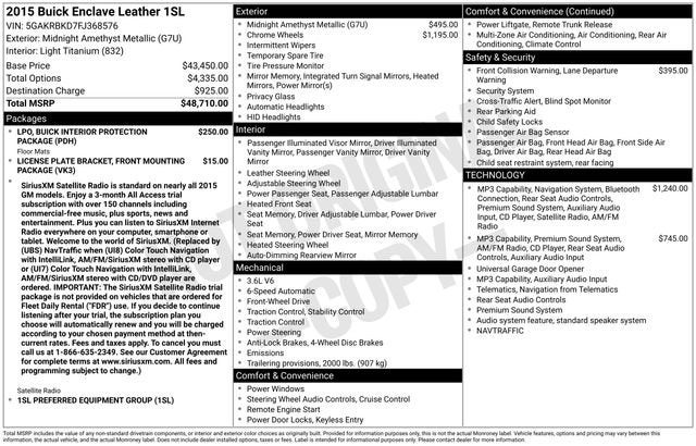 Midnight Amethyst Metallic 2015 Buick Enclave Leather Group 3.6L V6 SIDI VVT 6-Speed Automatic Electronic with Overdrive FWD