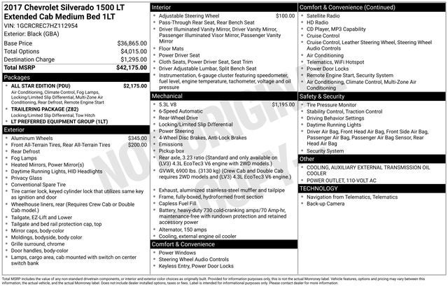 Black 2017 Chevrolet Silverado 1500 LT LT1 EcoTec3 5.3L V8 6-Speed Automatic Electronic with Overdrive RWD