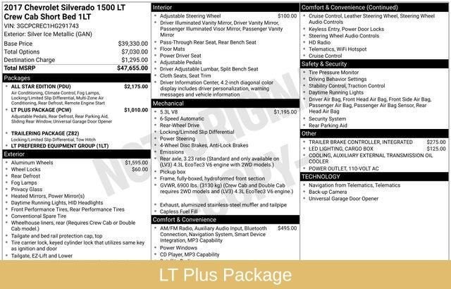 Experience the power, versatility, and premium features of the 2017 Chevrolet Silverado 1500 LT LT1. Visit our showroom today and let us demonstrate how this exceptional truck can enhance your driving experience.