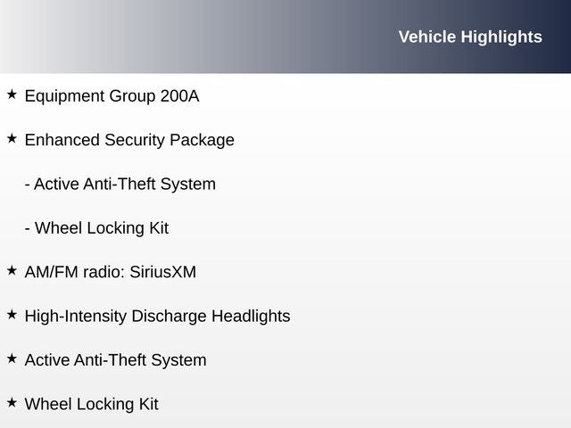 - Enhanced Security Package with Electronic-Locking Center Console and Steering Column Lock