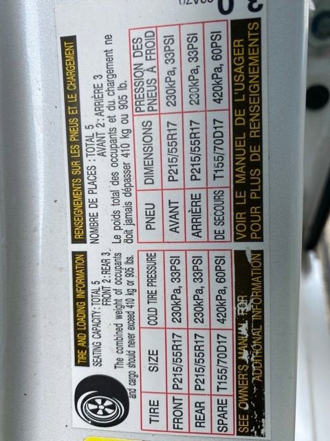 - Tires: P215/55R17 AS