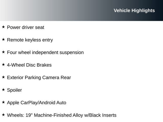 • Wheels: 19" Machine-Finished Alloy w/Black Inserts