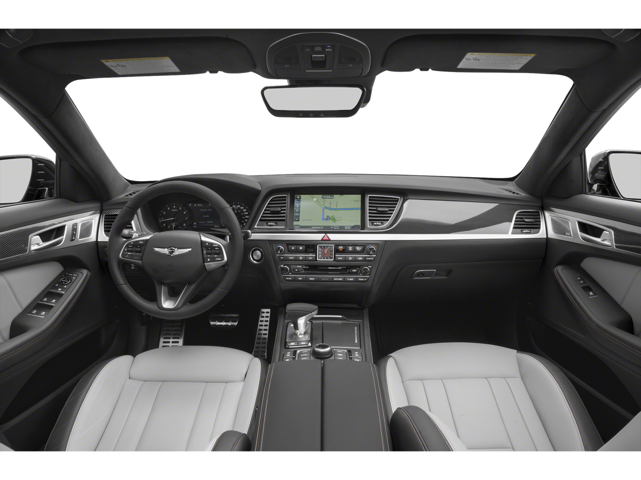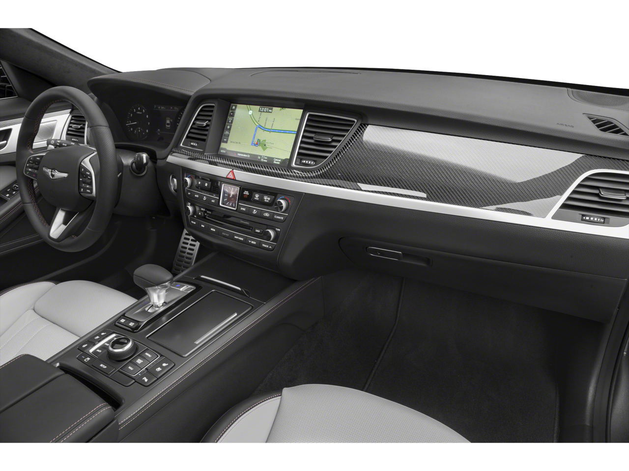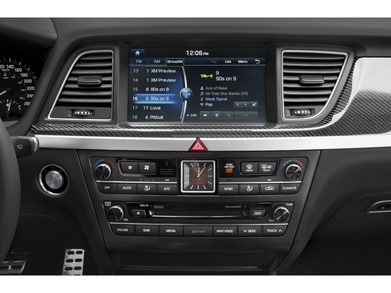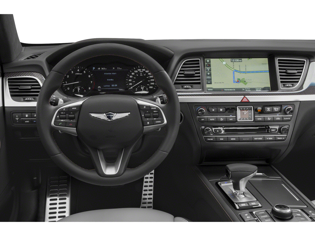 • Radio: AM/FM/HD/SiriusXM/CD/DVD/MP3 Audio System -inc: Lexicon Quantum Logic surround sound system w/17 high efficiency speakers (1 front coaxial dash-mounted midrange, 1 front dash-mounted tweeter, 2 front dash-mounted midrange, 2 front door-mounted tweeters, 2 front door-mounted woofers, 2 rear door-mounted tweeters, 2 rear door-mounted midrange, 2 rear door-mounted woofers, 2 rear deck midrange and rear deck subwoofer), Clari-FI Music Restoration Technology, Lexicon 12-channel digital external amplifier: 75W x 12 channels (900W max, equivalent output), speed-sensing auto volume control, AVN 2.0 navigation system, 9.2" touchscreen 720P HD display, driver information system, SiriusXM Traffic, Android Auto, Apple CarPlay, 1 USB data/charge plus 1 USB charge only, Bluetooth® hands-free phone system w/audio streaming and Genesis Connected Services