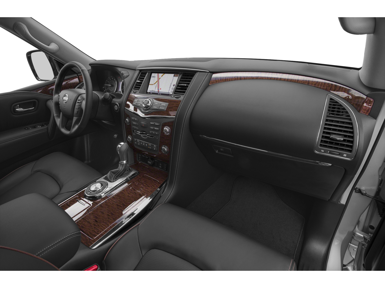 Gun Metallic 2019 Nissan Armada SL RWD 7-Speed Automatic 5.6L V8 DOHC 32V Endurance 13 Speakers, 2.937 Axle Ratio, 2nd Row Captain's Chairs, 2nd Row Center Console w/ Padded Armrest, 3rd row seats: split-bench, 4-Wheel Disc Brakes, ABS brakes, Air Conditioning, Alloy wheels, AM/FM radio: SiriusXM, Anti-whiplash front head restraints, Auto tilt-away steering wheel, Auto-dimming door mirrors, Auto-dimming Rear-View mirror, Auto-leveling suspension, Automatic temperature control, Blind Spot Warning, Brake assist, Bumpers: body-color, Captain's Chairs Package, Carpeted Floor Mats w/ Captain Seat Package, CD player, Cross Bars, Delay-off headlights, Driver door bin, Driver vanity mirror, Dual front impact airbags, Dual front side impact airbags, Electronic Stability Control, Emergency communication system: NissanConnect Services, Four wheel independent suspension, Front anti-roll bar, Front Bucket Seats, Front Center Armrest, Front dual zone A/C, Front fog lights, Front reading lights, Fully automatic headlights, Garage door transmitter: HomeLink, Heated door mirrors, Heated Front Bucket Seats w/Driver Memory, Heated front seats, Illuminated entry, Illuminated Kick Plates, Intelligent Back-Up Intervention (I-BI), Intelligent Distance Control (I-DC), Leather Shift Knob, Leather-Appointed Seat Trim, Low tire pressure warning, Memory seat, Navigation System, Occupant sensing airbag, Outside temperature display, Overhead airbag, Overhead console, Panic alarm, Passenger door bin, Passenger vanity mirror, Power door mirrors, Power driver seat, Power Liftgate, Power passenger seat, Power Sliding Moonroof w/Front Tilt & Rear Slide, Power steering, Power windows, Premium Package, Radio data system, Radio: AM/FM/SXM/CD/MP3/HD, Rain sensing wipers, Rear air conditioning, Rear anti-roll bar, Rear Cross Traffic Alert (RCTA), Rear reading lights, Rear seat center armrest, Rear window defroster, Rear window wiper, Reclining 3rd row seat, Remote keyless entry, Roof rack: rails only, Security system, Speed control, Speed-sensing steering, Speed-Sensitive Wipers, Split folding rear seat, Spoiler, Steering wheel memory, Steering wheel mounted audio controls, Tachometer, Telescoping steering wheel, Tilt steering wheel, Traction control, Trip computer, Turn signal indicator mirrors, Variably intermittent wipers, Voltmeter, Wheels: 20 Machined Finish Painted Alloy.