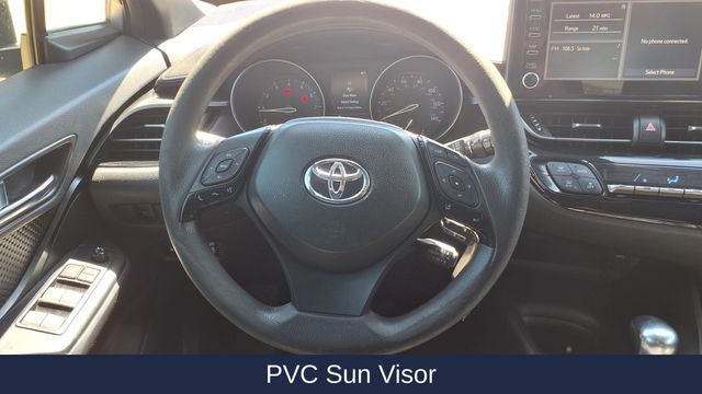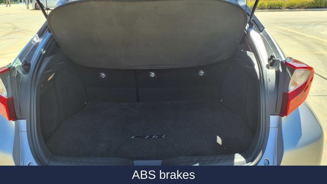 Comfort and convenience are at the forefront of the C-HR's design. Slip into the - 6 Speakers, AM/FM radio, Radio data system, Air Conditioning, Automatic temperature control, Rear window defroster, Power steering, Power windows, Steering wheel mounted audio controls, Speed control, Brake assist, Four wheel independent suspension, Speed-sensing steering, Auto High-beam Headlights, Delay-off headlights, Fully automatic headlights, Power door mirrors, Spoiler, Turn signal indicator mirrors, Auto-dimming Rear-View mirror, Driver door bin, Driver vanity mirror, Front reading lights, Leather Shift Knob, Outside temperature display, Passenger vanity mirror, Tachometer, Telescoping steering wheel, Tilt steering wheel, Trip computer, 4-Wheel Disc Brakes, Dual front impact airbags, Dual front side impact airbags, Front anti-roll bar, Knee airbag, Occupant sensing airbag, Overhead airbag, Rear anti-roll bar, Rear side impact airbag, Fabric Seat Material, Front Bucket Seats, Front Center Armrest, Split folding rear seat, Panic alarm, Passenger door bin, 18 Alloy Wheels, Rear window wiper, and Variably intermittent wipers - that ensure a comfortable and connected driving experience.