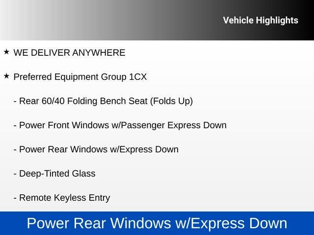 - Custom Convenience Package includes (BTV) Remote Start with (UTJ) content theft alarm, (C49) rear-window defogger, (UF2) bed LED cargo area lighting and (QT5) EZ Lift power lock and release tailgate (Included and only available with (PDX) Custom Value Package.)