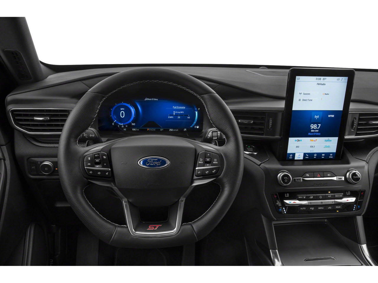 Packed with cutting-edge technology, the Explorer ST keeps you connected and entertained. The Voice-Activated Touchscreen Navigation System, 10.1 LCD Capacitive Portrait Touchscreen, and SYNC 3/Apple CarPlay/Android Auto integration ensure you stay informed and in control. The Premium Technology Package, featuring a 980-watt sound system, takes your music to new heights.