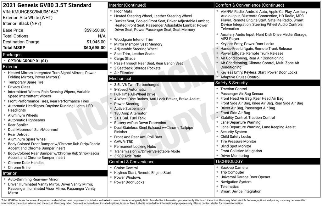 2021 Genesis GV80 3.5T