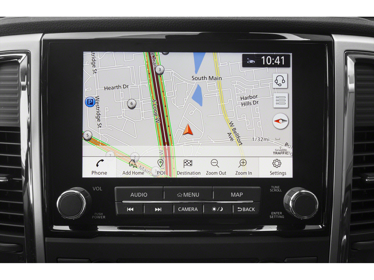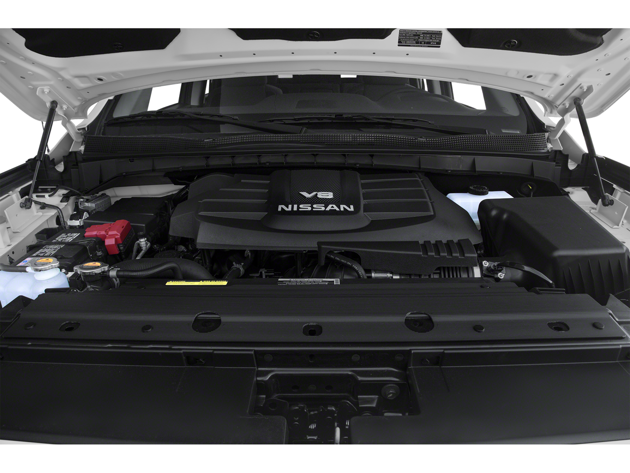 110V/12V Outlets In Back Of Center Console, 2 Illuminated USB-A Ports In Back Of Center Console, 3.692 Axle Ratio, 4-Wheel Disc Brakes, 6 Speakers, ABS brakes, Accessory Utility Package, Air Conditioning, All Season Floor Mats, Alloy wheels, AM/FM radio: SiriusXM, Auto High-beam Headlights, Auto-Dimming Rear-View Mirror, Blind Spot Warning, Brake assist, Bumper Step, Bumpers: chrome, Carpet Floor Mats (L95), Chrome Interior Door Locks, Cloth Seat Trim, Convex Spotter Mirror, Dedicated Cell Phone Holder, Driver door bin, Driver vanity mirror, Dual front impact airbags, Dual front side impact airbags, Dual Zone Automatic HVAC, Electronic Stability Control, Emergency communication system: NissanConnect Services, Front & Rear Parking Sensors, Front anti-roll bar, Front Center Armrest w/Storage, Front reading lights, Front Split Bench Seat (40/20/40), Front wheel independent suspension, Fully automatic headlights, Heated door mirrors, Heated Front Captain's Chairs, Illuminated entry, Intelligent Key System, Knee airbag, Leather-Wrapped Steering Wheel, Low tire pressure warning, NissanConnect featuring Apple CarPlay and Android Auto, Occupant sensing airbag, Off Road Protection Package, Outside temperature display, Overhead airbag, Overhead console, Panic alarm, Passenger door bin, Passenger vanity mirror, Power door mirrors, Power Sliding Rear Window w/Defogger, Power steering, Power windows, Radio data system, Radio: NissanConnect AM/FM, Radio: NissanConnect w/Navigation, Rear anti-roll bar, Rear HVAC Vents, Rear Parking Sensors, Rear seat center armrest, Rear step bumper, Rear window defroster, Remote Engine Start on Key Fob, Remote keyless entry, Security system, Speed control, Speed-sensing steering, Speed-Sensitive Wipers, Splash Guards, Split folding rear seat, Steering wheel mounted audio controls, SV Convenience Package, Tachometer, Telescoping steering wheel, Tilt steering wheel, Traction control, Traffic Sign Recognition (TSR), Trailer Hitch, Trip computer, Variably intermittent wipers, Voltmeter, Wheels: 18 x 8 Silver Painted Alloy, Wheels: 20 x 8 Chrome.
