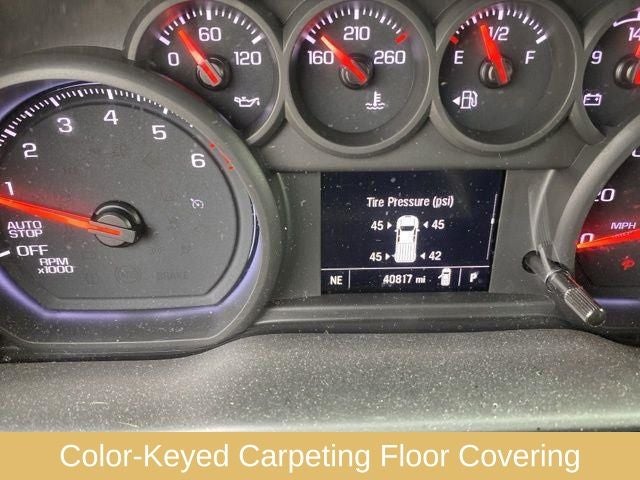 10-Way Power Driver Seat w/Lumbar, 120-Volt Bed Mounted Power Outlet, 120-Volt Instrument Panel Power Outlet, 3.42 Rear Axle Ratio, 3.5 Monochromatic Display Driver Info Center, 4-Wheel Disc Brakes, 40/20/40 Front Split-Bench Seat, 6 Speakers, 6-Speaker Audio System, ABS brakes, Air Conditioning, Alloy wheels, AM/FM radio: SiriusXM, Apple CarPlay/Android Auto, Auto High-beam Headlights, Automatic Emergency Braking, Black Name Plates (LPO), Black Tailgate CHEVROLET Lettering (LPO), Bluetooth® For Phone, Brake assist, Bumpers: body-color, Chevrolet Connected Access Capable, Cloth Seat Trim, Color-Keyed Carpeting Floor Covering, Compass, Custom Convenience Package, Custom Value Package, Dark Essentials Package (LPO), Deep-Tinted Glass, Delay-off headlights, Driver door bin, Driver vanity mirror, Dual front impact airbags, Dual front side impact airbags, Dual Rear USB Ports (Charge Only), Electric Rear-Window Defogger, Electrical Steering Column Lock, Electronic Cruise Control, Electronic Stability Control, EZ Lift Power Lock & Release Tailgate, Following Distance Indicator, Forward Collision Alert, Front anti-roll bar, Front Black Bowtie Emblem (LPO), Front Center Armrest w/Storage, Front Frame-Mounted Black Recovery Hooks, Front Pedestrian Braking, Front reading lights, Front Rubberized Vinyl Floor Mats, Front wheel independent suspension, Fully automatic headlights, HD Rear Vision Camera, Heated door mirrors, High Capacity Suspension Package, Hitch Guidance, Illuminated entry, IntelliBeam Automatic High Beam On/Off, Lane Keep Assist w/Lane Departure Warning, LED Cargo Area Lighting, Low tire pressure warning, Manual Tilt Wheel Steering Column, Not Equipped w/Rear USB Ports, Not Equipped w/Steering Column Lock, Occupant sensing airbag, OnStar & Chevrolet Connected Services Capable, Outside temperature display, Overhead airbag, Overhead console, Panic alarm, Passenger door bin, Passenger vanity mirror, Power door mirrors, Power driver seat, Power Front Windows w/Driver Express Up/Down, Power Front Windows w/Passenger Express Down, Power Rear Windows w/Express Down, Power steering, Power windows, Preferred Equipment Group 1CX, Premium audio system: Chevrolet Infotainment 3, Radio data system, Radio: Chevrolet Infotainment 3 System, Rear 60/40 Folding Bench Seat (Folds Up), Rear reading lights, Rear Rubberized-Vinyl Floor Mats, Rear step bumper, Rear window defroster, Remote Keyless Entry, Remote keyless entry, Remote Vehicle Starter System, Security system, SiriusXM Radio, Speed control, Speed-sensing steering, Split folding rear seat, Standard Tailgate, Tachometer, Theft Deterrent System (Unauthorized Entry), Tilt steering wheel, Traction control, Trailering Package, Trip computer, Variably intermittent wipers, Voltmeter, Wheels: 20 x 9 Bright Silver Painted Aluminum, Wi-Fi Hot Spot Capable, Wireless Phone Projection.