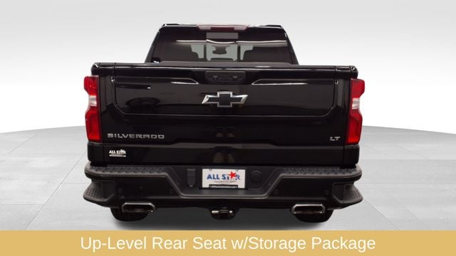 The exterior of this Silverado commands attention with its sleek black paint and high-gloss black 20-inch aluminum wheels. The multi-flex tailgate offers unparalleled versatility, while the Chevytec spray-on bedliner ensures your cargo stays secure and protected.