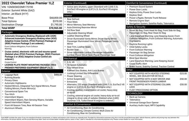 Discover the true meaning of luxury and capability in this exceptional 2022 Chevrolet Tahoe Premier. With its unparalleled features, impressive performance, and timeless design, this SUV is the perfect companion for your adventures. Visit our showroom today and experience the Tahoe Premier for yourself. We're confident you'll be captivated by its remarkable qualities.
