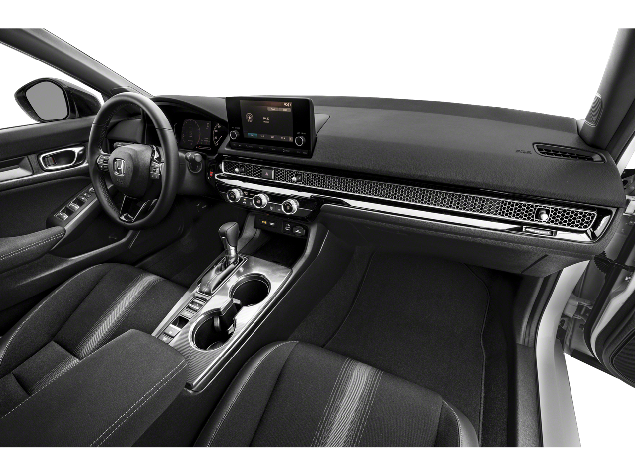 Lunar Silver Metallic 2022 Honda Civic Sport FWD CVT 2.0L I4 DOHC 16V i-VTEC WE DELIVER ANYWHERE, Black w/Leather-Trimmed Seating Surfaces, 4-Wheel Disc Brakes, 8 Speakers, ABS brakes, Adaptive Cruise Control: Adaptive Cruise Control (ACC) with Low-Speed Follow, Air Conditioning, Alloy wheels, AM/FM radio, Apple CarPlay/Android Auto, Auto High-beam Headlights, Automatic temperature control, Brake assist, Bumpers: body-color, Cloth Seat Trim, Delay-off headlights, Driver door bin, Driver vanity mirror, Dual front impact airbags, Dual front side impact airbags, Electronic Stability Control, Emergency communication system: HondaLink, Exterior Parking Camera Rear, Forward collision: Collision Mitigation Braking System (CMBS) + FCW mitigation, Four wheel independent suspension, Front anti-roll bar, Front Bucket Seats, Front Center Armrest, Front reading lights, Fully automatic headlights, Illuminated entry, Knee airbag, Leather Shift Knob, Leather steering wheel, Low tire pressure warning, Occupant sensing airbag, Outside temperature display, Overhead airbag, Panic alarm, Passenger door bin, Passenger vanity mirror, Power door mirrors, Power steering, Power windows, Radio data system, Radio: 180-Watt AM/FM Audio System, Rear anti-roll bar, Rear side impact airbag, Rear window defroster, Remote keyless entry, Security system, Speed control, Speed-sensing steering, Steering wheel mounted audio controls, Tachometer, Telescoping steering wheel, Tilt steering wheel, Traction control, Trip computer, Wheels: 18 Gloss Black Alloy, Black w/Leather-Trimmed Seating Surfaces.