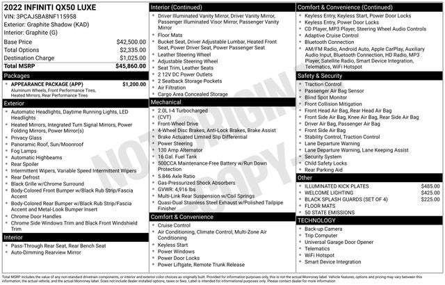 We invite you to experience the exceptional 2022 INFINITI QX50 LUXE for yourself. Schedule a test drive today and discover the joy of owning a vehicle that combines uncompromising quality with unparalleled style.