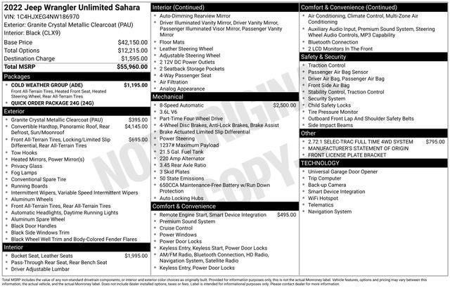 Boasting an impressive array of premium amenities, this Wrangler Unlimited Sahara is equipped with: