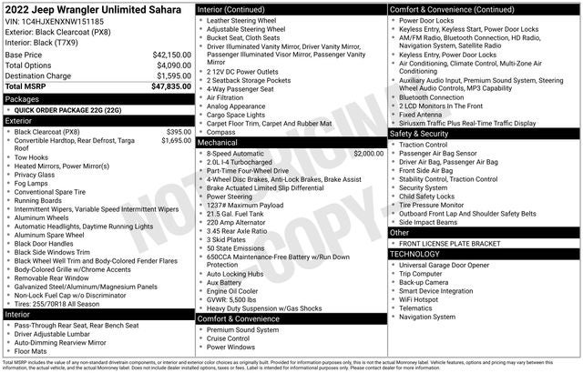- Manual Convertible Top w/Fixed Roll-Over Protection and Top