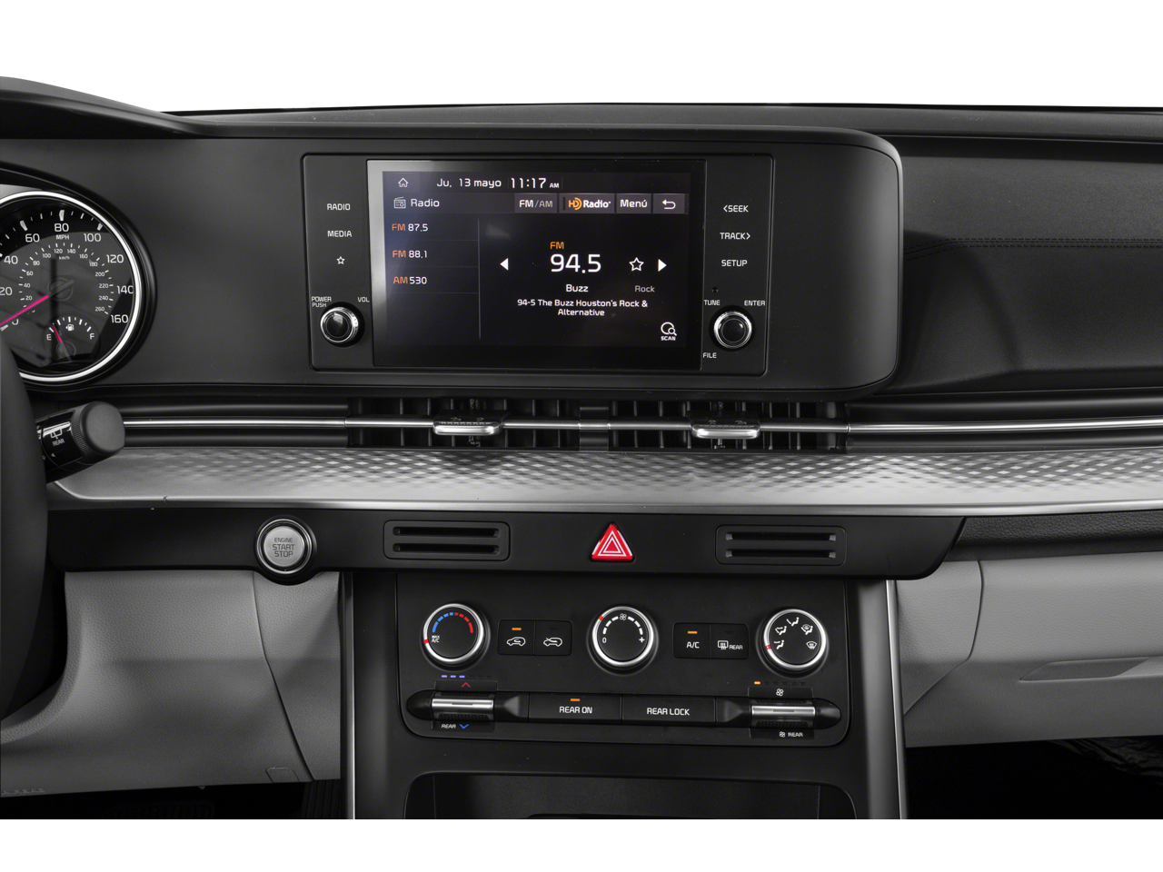 • Radio w/Seek-Scan, Clock, Speed Compensated Volume Control, Steering Wheel Controls, Voice Activation and UVO3 External Memory Control
