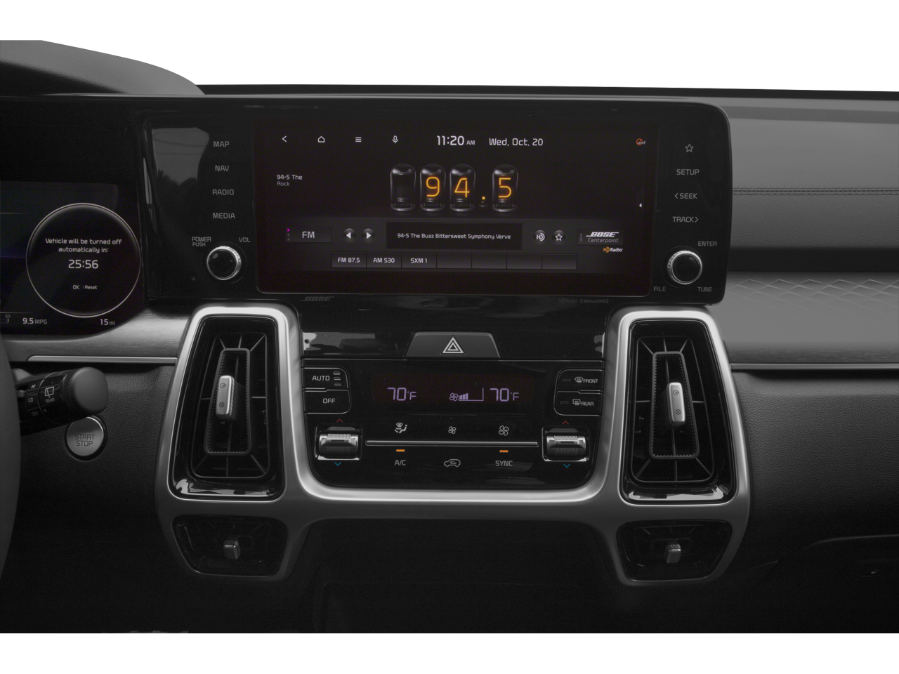 CARFAX One-Owner. Clean CARFAX. Wolf Gray 2022 Kia Sorento SX FWD 8-Speed DCT 2.5L I4 DGI Turbocharged DOHC 16V LEV3-ULEV70 281hp 3.316 Axle Ratio, 3rd row seats: split-bench, 4-Wheel Disc Brakes, 6 Speakers, ABS brakes, Air Conditioning, Alloy wheels, AM/FM radio: SiriusXM, Apple CarPlay & Android Auto, Auto High-beam Headlights, Automatic temperature control, Brake assist, Bumpers: body-color, Cargo Net, Carpeted Floor Mats, Delay-off headlights, Driver door bin, Driver vanity mirror, Dual front impact airbags, Dual front side impact airbags, Electronic Stability Control, Emergency communication system: UVO Link, Exterior Parking Camera Rear, Four wheel independent suspension, Front anti-roll bar, Front Bucket Seats, Front Center Armrest, Front dual zone A/C, Front fog lights, Front reading lights, Fully automatic headlights, Heated door mirrors, Heated Front Bucket Seats, Heated front seats, Illuminated entry, Knee airbag, Leather steering wheel, Low tire pressure warning, Navigation System, Occupant sensing airbag, Outside temperature display, Overhead airbag, Overhead console, Panic alarm, Passenger door bin, Passenger vanity mirror, Power door mirrors, Power driver seat, Power Liftgate, Power moonroof, Power passenger seat, Power steering, Power windows, Radio data system, Radio: AM/FM Audio System, Rear air conditioning, Rear anti-roll bar, Rear reading lights, Rear window defroster, Rear window wiper, Remote keyless entry, Roof rack: rails only, Security system, Smart Key w/ Push Button and Remote Start, Speed control, Speed-sensing steering, Split folding rear seat, Spoiler, Steering wheel mounted audio controls, SynTex Artificial Leather Seat Trim, Tachometer, Telescoping steering wheel, Tilt steering wheel, Traction control, Trip computer, Turn signal indicator mirrors, Variably intermittent wipers, Wheels: 8.5J x 20 Gloss Black Alloy.