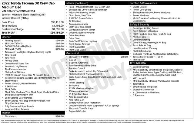 With its rugged good looks, impressive capabilities, and thoughtful amenities, this 2022 Toyota Tacoma SR V6 is the perfect companion for your active lifestyle. Experience the difference for yourself by scheduling a test drive today. We're confident you'll be impressed by everything this capable pickup has to offer.