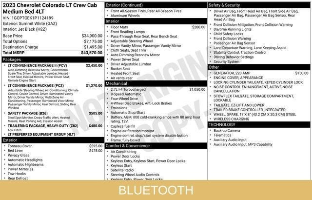 The Colorado LT also boasts a wealth of advanced technology, such as wireless charging, a Bose premium sound system, and seamless smartphone integration with Apple CarPlay and Android Auto. Enjoy the peace of mind of Chevy Safety Assist features, including Forward Collision Alert, Lane Keep Assist, and Automatic Emergency Braking.