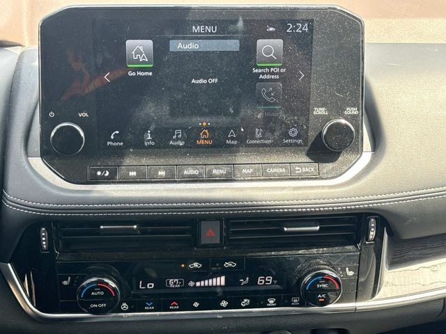 • Radio: AM/FM NissanConnect w/Navigation -inc: Nissan door to door navigation w/3D building graphics and satellite imagery featuring online POI search and online premium traffic information and 5 years complimentary map updates, SiriusXM Traffic, SiriusXM Travel Link, 9" color display w/multi-touch control, NissanConnect featuring Apple CarPlay and Android Auto and Bluetooth®