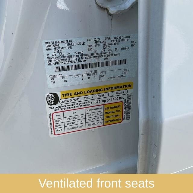 - Heated & Ventilated Leather Front Captain's Chairs -inc: 7-passenger seating, 10-way power driver w/memory (power function for tilt, lumbar and recline), 8-way power passenger seats (power function for lumbar and recline) and 2-way manually adjustable head restraints