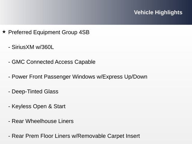 - SiriusXM with 360L includes a trial subscription to the Platinum Plan. Experience more channels in the vehicle, a more personalized experience and easier navigation. (IMPORTANT: The SiriusXM trial package is not provided on vehicles that are ordered for Fleet Daily Rental ("FDR") use. Trial subscription subject to the SiriusXM Customer Agreement and privacy policy, visit www.siriusxm.com which includes full terms and how to cancel. All fees, content, features, and availability are subject to change. Some features require GM connected vehicle services.)