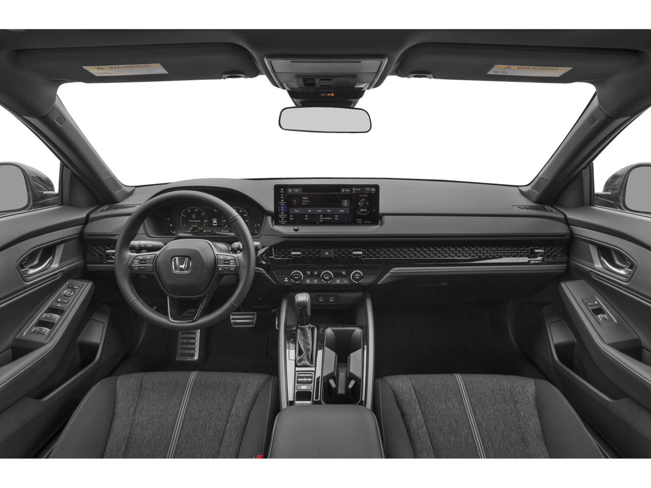 2024 Honda Accord Hybrid Sport FWD eCVT 2.0L 16V DOHC 4-Wheel Disc Brakes, 8 Speakers, ABS brakes, Adaptive Cruise Control: Adaptive Cruise Control (ACC) with Low-Speed Follow, Air Conditioning, Alloy wheels, AM/FM radio, Apple CarPlay/Android Auto, Auto High-beam Headlights, Automatic temperature control, Blind Spot Information (BSI) System warning, Brake assist, Bumpers: body-color, Compass, Delay-off headlights, Driver door bin, Driver vanity mirror, Dual front impact airbags, Dual front side impact airbags, Electronic Stability Control, Emergency communication system: HondaLink, Exterior Parking Camera Rear, Fabric Seat Trim, Four wheel independent suspension, Front anti-roll bar, Front Bucket Seats, Front Center Armrest, Front dual zone A/C, Front reading lights, Fully automatic headlights, Illuminated entry, Knee airbag, Lane departure: Lane Keeping Assist System (LKAS) active, Leather Shift Knob, Leather steering wheel, Low tire pressure warning, Occupant sensing airbag, Outside temperature display, Overhead airbag, Overhead console, Panic alarm, Passenger door bin, Passenger vanity mirror, Power door mirrors, Power driver seat, Power moonroof, Power steering, Power windows, Radio data system, Radio: 180-Watt Audio System, Rear anti-roll bar, Rear reading lights, Rear seat center armrest, Rear side impact airbag, Rear window defroster, Remote keyless entry, Security system, Speed control, Speed-sensing steering, Speed-Sensitive Wipers, Split folding rear seat, Spoiler, Steering wheel mounted audio controls, Telescoping steering wheel, Tilt steering wheel, Traction control, Trip computer, Variably intermittent wipers, Wheels: 19 x 8.5J Berlina Black.