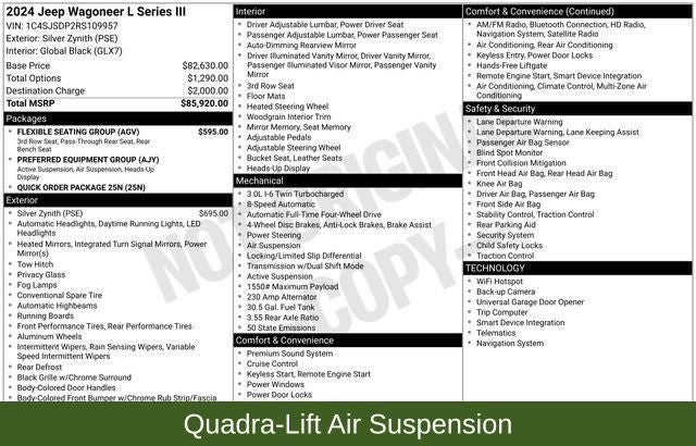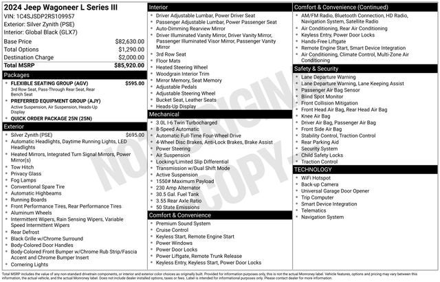 Certified. Silver Zynith 2024 Jeep Wagoneer L Series III 3.0L I6 8-Speed Automatic 4WD