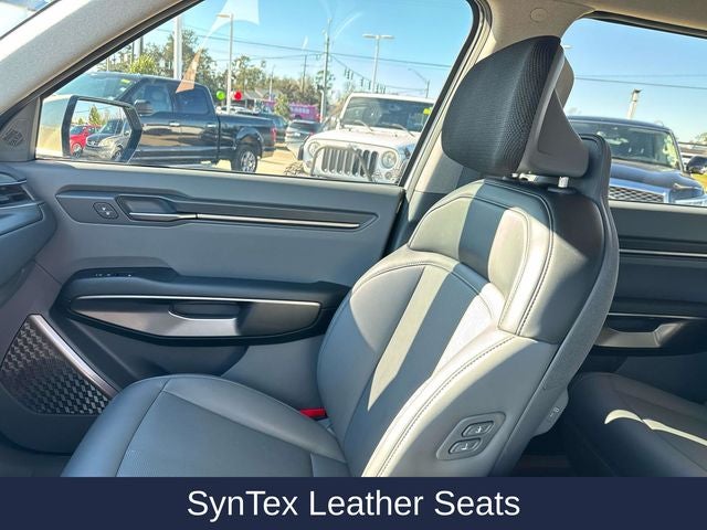 Tailored to your needs, this EV9 boasts an impressive array of premium amenities, including - See Dealer for Details, AM/FM radio: SiriusXM, Front dual zone A/C, Rear air conditioning, Power driver seat, Electronic Stability Control, Delay-off headlights, Turn signal indicator mirrors, Apple CarPlay & Android Auto, Auto-dimming Rear-View mirror, Garage door transmitter: HomeLink, Illuminated entry, Rear reading lights, Rear seat center armrest, Navigation System, Exterior Parking Camera Rear, 3rd row seats: split-bench, Heated & Ventilated Front Bucket Seats, Heated front seats, Power passenger seat, SynTex Leather Seats, and Ventilated front seats.