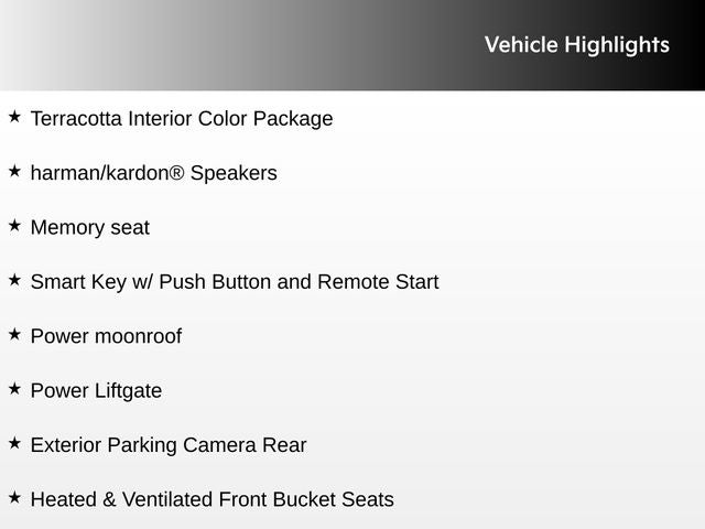 Experience the unparalleled comfort of the heated and ventilated front seats, as well as the heated and ventilated rear seats, ensuring everyone on board can enjoy a relaxing journey. The smart key with push-button start and remote start functionality add a touch of convenience, while the power liftgate and available roof rails provide the versatility you need to accommodate your lifestyle.
