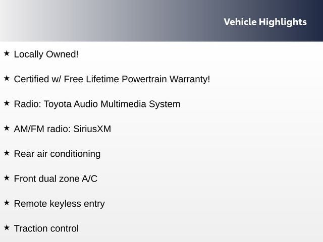 • Certified w/ Free Lifetime Powertrain Warranty!