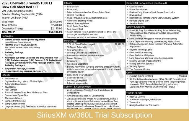 • SiriusXM w/360L Trial Subscription