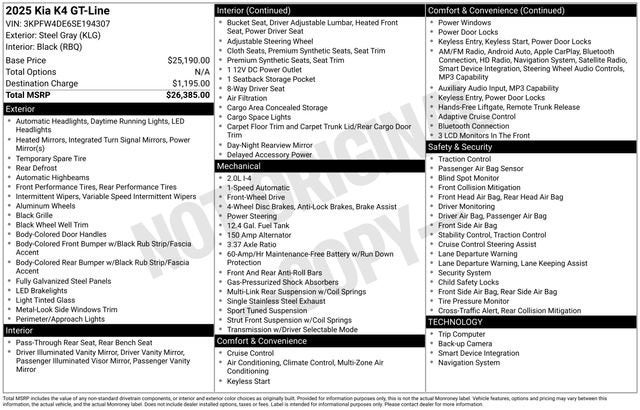 Clean CARFAX. CARFAX One-Owner. Priced below KBB Fair Purchase Price! Steel Gray 2025 Kia K4 GT-Line 2.0L I4 MPI CVT FWD