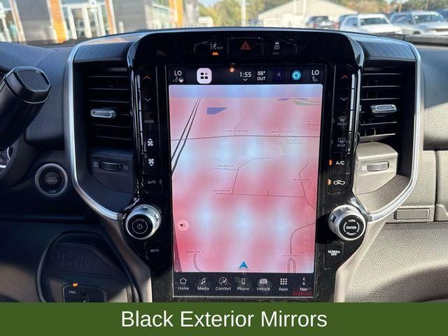 115V Auxiliary Front Power Outlet, 115V Auxiliary Rear Power Outlet, 12 Touchscreen Display, 2 Way Rear Headrest Seat, 2nd Row In Floor Storage Bins, 4 Way Front Headrests, 400W Inverter, 4G LTE Wi-Fi Hot Spot, 6 Speakers, 9 Alpine Speakers w/Subwoofer, Active Lane Management System, Adaptive Steering System, Air Conditioning ATC w/Dual Zone Control, Alexa Built-In, Anti-Spin Differential Rear Axle, Apple CarPlay, Auto High Beam Headlamp Control, Auto Power-Folding Mirrors, Auto-Dimming Rear-View Mirror, Big Horn Level 2 Plus Equipment Group, Black Exterior Mirrors, Blind Spot & Cross Path Detection, Bucket Seats, Connected Travel & Traffic Services, Connectivity - US/Canada, CTR Stop Lamp w/Cargo View Camera, Dampened Tailgate, Disassociated Touchscreen Display, Drowsy Driver Detection, Dual Glove Boxes, Dual Wireless Charging Pad, Emergency Vehicle Alert System (EVAS), Exterior 115V AC Outlet, Exterior Mirrors Courtesy Lamps, Exterior Mirrors w/Heating Element, Exterior Mirrors w/Supplemental Signals, Foam Bottle Insert (Door Trim Panel), Folding Flat Load Floor Storage, Footwell Courtesy Lamp, Forward & Reverse Utility Lights, Front Seat Back Map Pockets, Full Length Upgraded Floor Console, Global Telematics Box Module (TBM), Glove Box Lamp, Google Android Auto, GPS Antenna Input, GPS Navigation, HD Radio, Heated Front Seats, Heated Steering Wheel, Integrated Voice Command w/Bluetooth®, LED Bed Lighting, LED Tail Lamps, Locking Lower Glove Box, Luxury Steering Wheel, Manual Adjust 4-Way Front Passenger Seat, Media Hub w/2 Charge Only USBs, Mirror Running Lights, MOPAR Deployable Bed Step, MOPAR Spray In Bedliner, Off-Road Info Pages, Power 2-Way Driver Lumbar Adjust, Power Adjust 8-Way Driver Seat, Power Adjust Mirrors, Power Adjustable Convex Aux Mirrors, Power Adjustable Pedals, Power Heated Folding Telescopic Mirrors, Power Telescoping Mirrors, Premium Cloth Bucket Seats, Quick Order Package 24Z Big Horn, Radio: Uconnect 5 Nav w/12.0 Display, Rain Sensitive Windshield Wipers, Rear 60/40 Folding Seat, Rear Dome w/On/Off Switch Lamp, Rear Power Sliding Window, Red Tail Lamp Bezels, Remote Start System, Selectable Tire Fill Alert, SiriusXM Radio Service, SiriusXM w/360L, Steering Wheel Mounted Audio Controls, Sun Visors w/Illuminated Vanity Mirrors, Surround View Camera System, Traffic Sign Recognition, Trailer Reverse Guidance, Trailer Tire Pressure Monitoring System, Trailer Tow Pages, Universal Garage Door Opener.