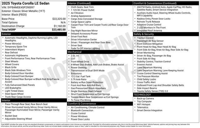Classic Silver Metallic 2025 Toyota Corolla LE 2.0L I4 DOHC 16V CVT FWD