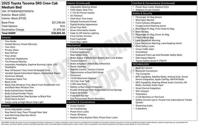 Black 2025 Toyota Tacoma SR5 2.4L 4-Cylinder 8-Speed Automatic RWD