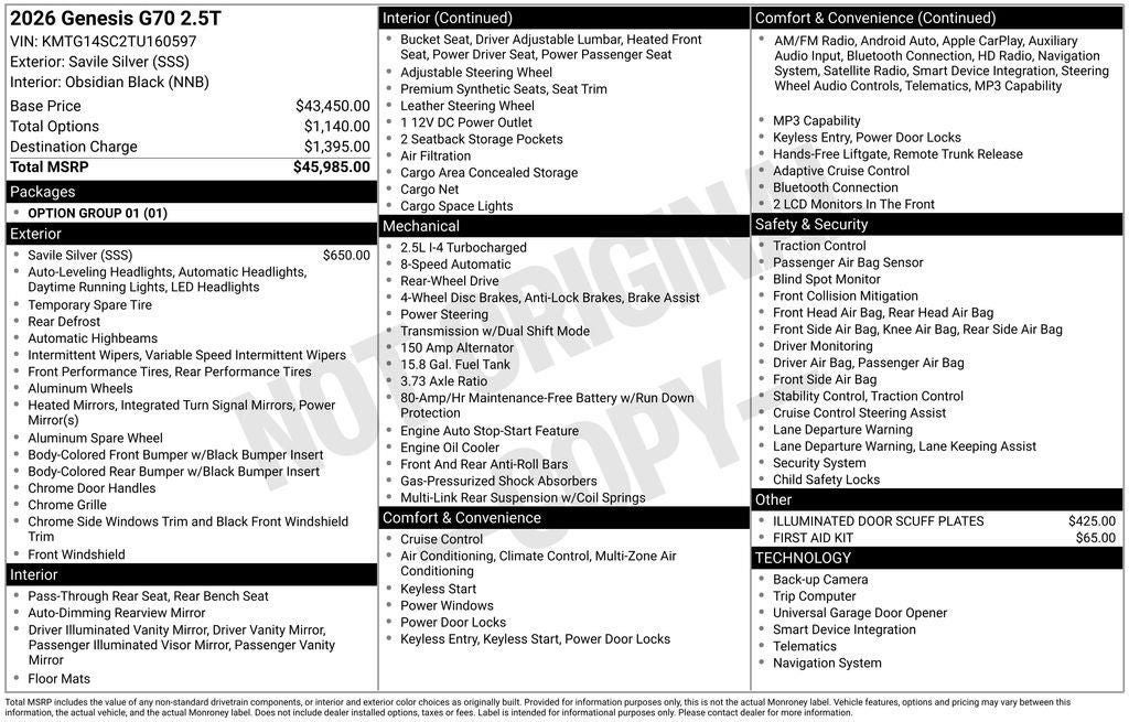 2026 Genesis G70 2.5T